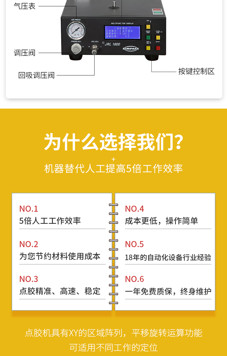 ·非常感謝您購買最新款JRL 1600數(shù)位氣壓式圓形數(shù)控點膠機。